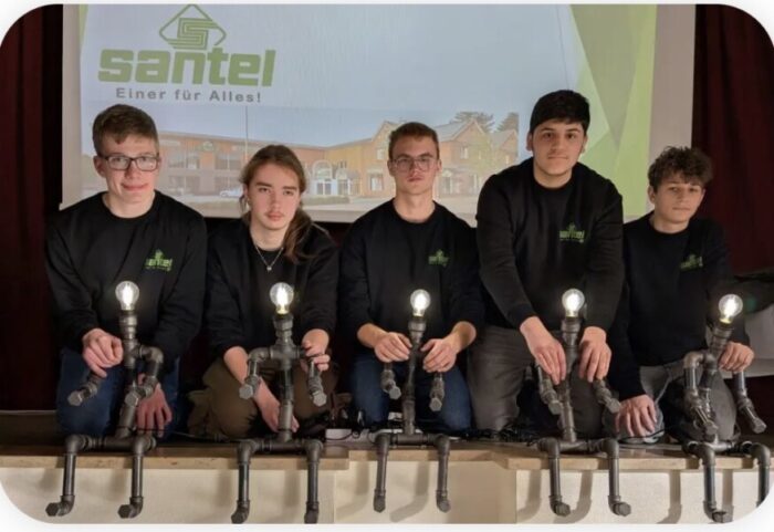 Im Rahmen eines praxisorientierten Projekts der Generationwerkstatt, unserer Schule und der Firma Santel hatten fünf unserer Schüler die Gelegenheit, gemeinsam mit einem erfahrenen Betreuer eine besondere Kunstfigur zu gestalten. Bennet Borgstede, Damian Kulik, Alexander Bühne, Kamiran Issa und Calvin Kiesner fertigten aus originalen Werkteilen der Haustechnik eine sogenannte „Klempner-Birne“.